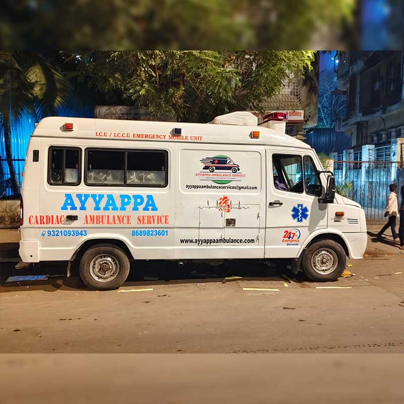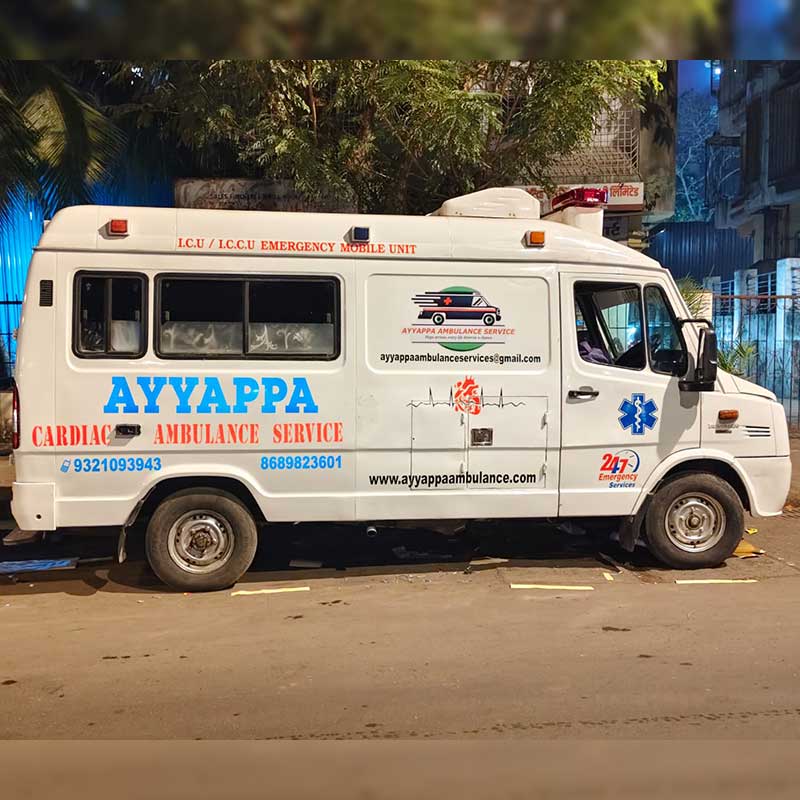 Ayyappa Ambulance, located in Dahisar East, is a trusted provider of 24×7 emergency medical transportation services. We are committed to delivering fast, safe, and reliable ambulance support with a strong focus on patient care and timely response across Mumbai and nearby areas.