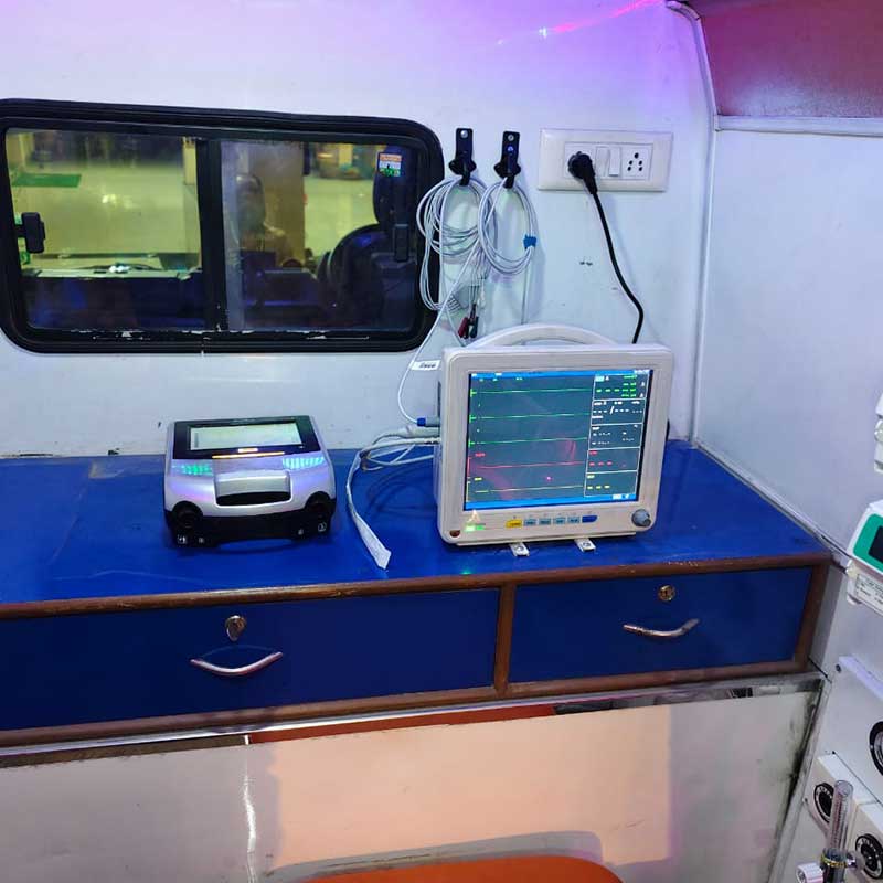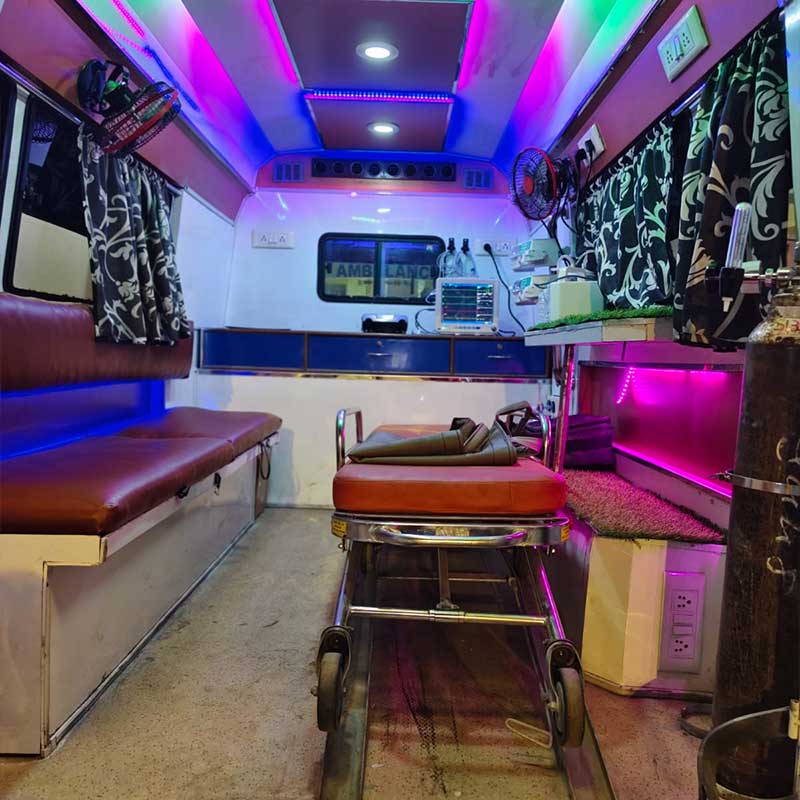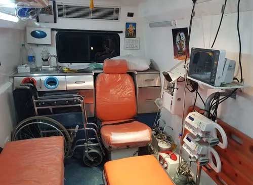 Fully equipped ICU ambulance with trained medical staff for safe and continuous critical patient care during transit.