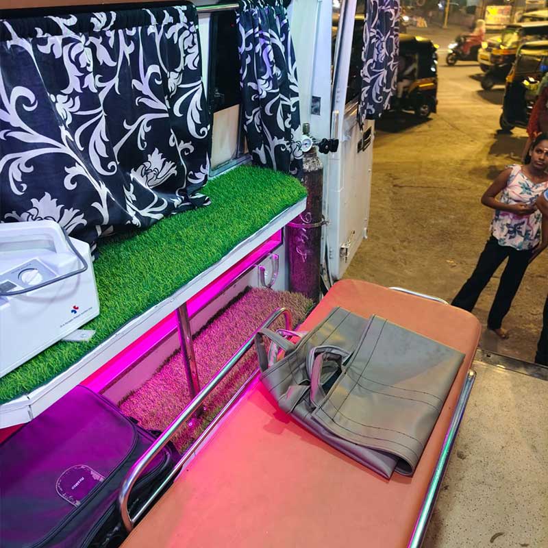 Ambulance equipped with oxygen support to assist patients with breathing difficulties during transportation.