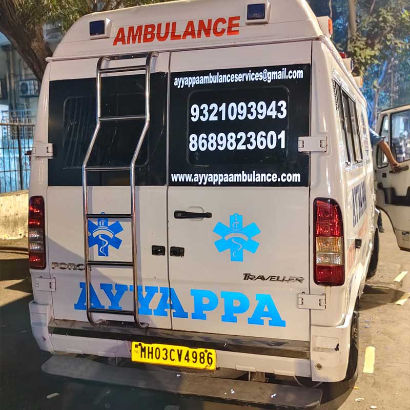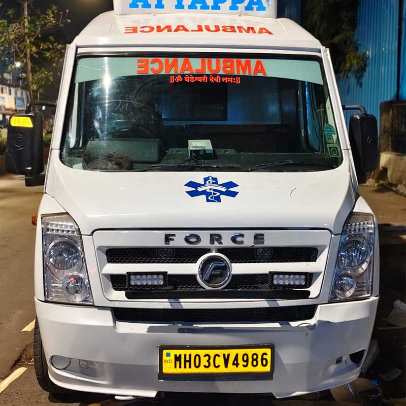 Ayyappa Ambulance, located in Dahisar East, is a trusted provider of 24×7 emergency medical transportation services. We are committed to delivering fast, safe, and reliable ambulance support with a strong focus on patient care and timely response across Mumbai and nearby areas.